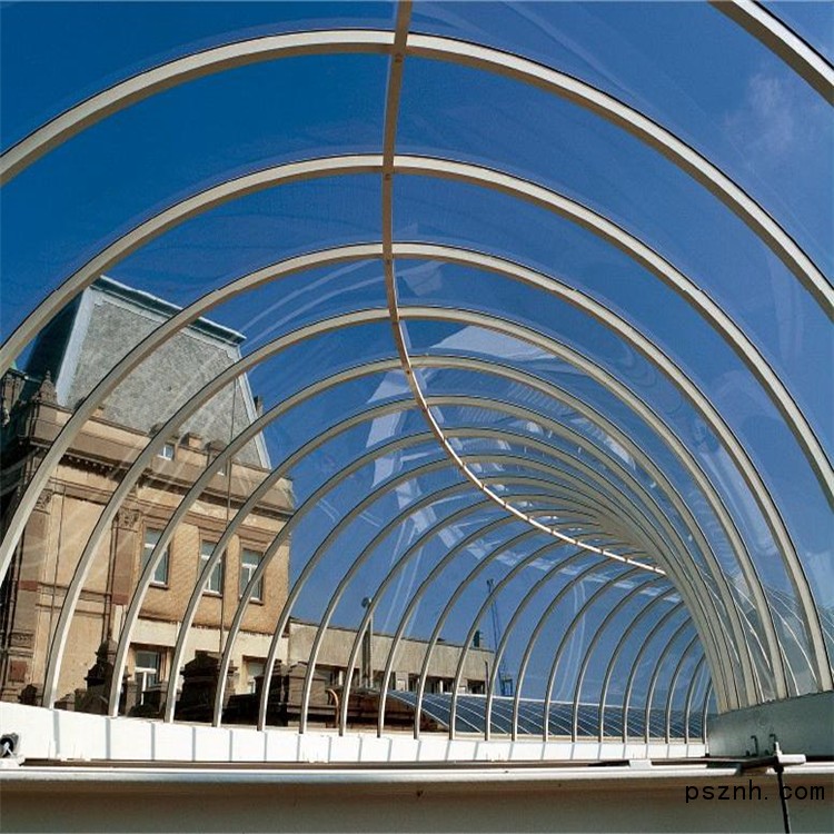 輕便性PC耐力板重量只有同等厚度玻璃的50%,PC陽光板重量約10—15%,便于搬運(yùn)、安裝。