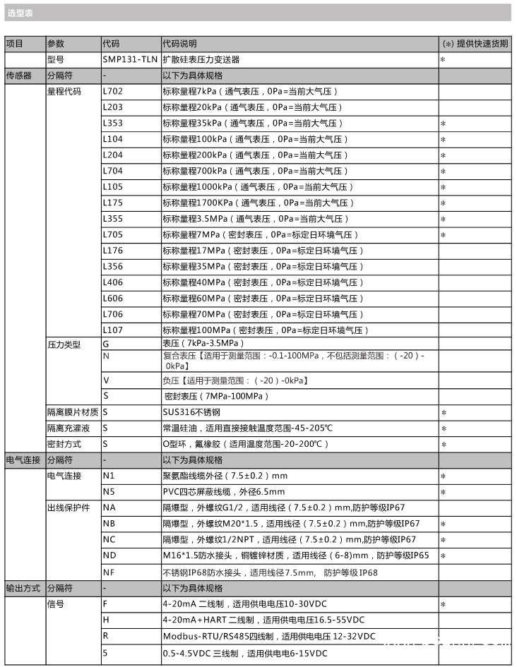 - 4-20mA,4-20mA+HART,0.5-4.5VDC