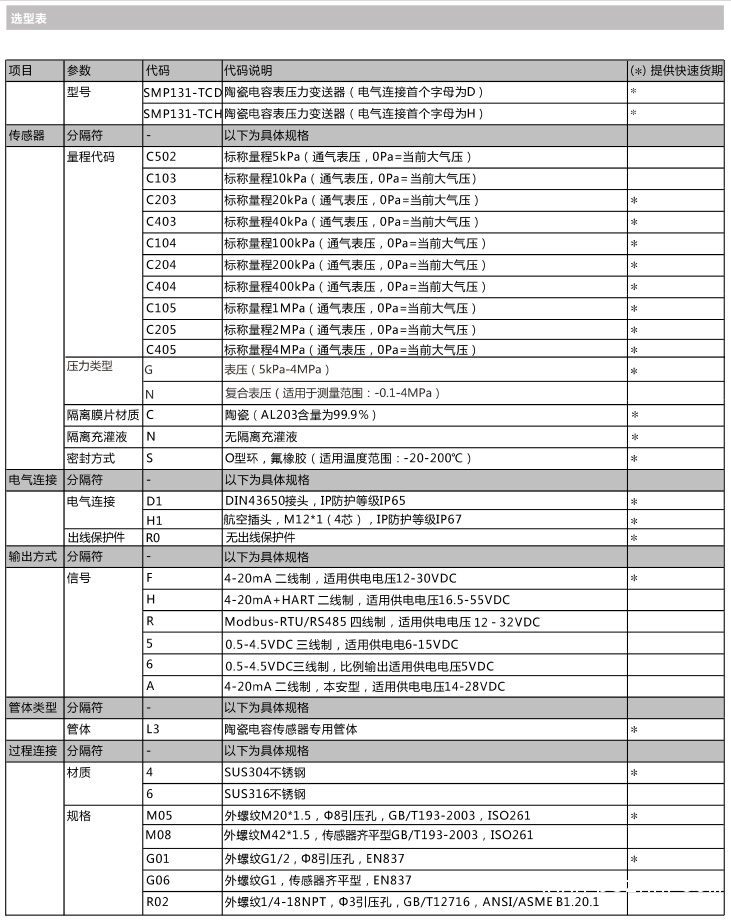 - 4-20mA,4-20mA+HART,0.5-4.5VDC