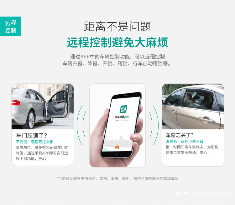 通過APP中的車輛控制功能,可以遠程控制車輛升窗、降窗、開鎖、落鎖、行車自動落鎖等。