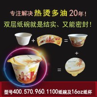 能做雙層的紙碗號(hào)有400ml,570ml,960ml,1080ml還有16盎司紙杯。兩層厚達(dá)500g的紙,顏色更鮮艷漂亮。專注解決熱燙多油20年!