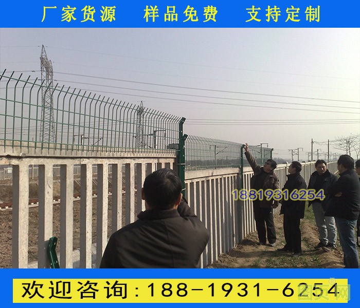 鐵路防護(hù)柵欄主要分鍍鋅防護(hù)柵欄、浸塑防護(hù)柵欄倆大種類(lèi),是以立柱加網(wǎng)片連接而成。選用優(yōu)質(zhì)低碳鋼絲焊接。不僅外觀大方,美觀,而且牢固,防腐性好。主要適用于鐵路兩旁及邊界的隔離防護(hù)及美化。