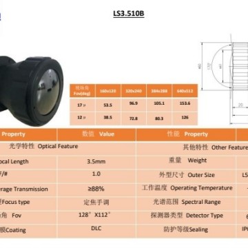 8 °×6°,12°×9°,48°×36°,微距鏡頭: 25μm,100μm