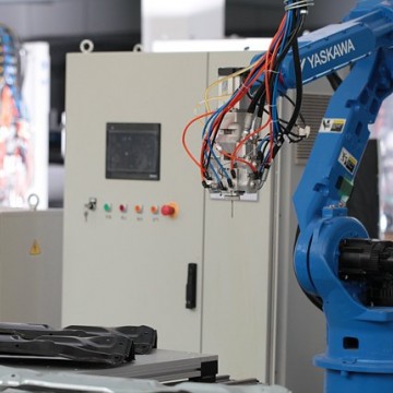 使用雙組份聚氨酯就汽車(chē)揚(yáng)聲器和箱罩進(jìn)行現(xiàn)場(chǎng)涂膠密封處理,包含2個(gè)KUKA六軸機(jī)器人,交換平臺(tái),雙組份動(dòng)態(tài)混合頭,旋轉(zhuǎn)等離子活化,固化線,二軸線性機(jī)器人,抓具,卡具,安全防護(hù),A、B膠自動(dòng)上料系統(tǒng),自動(dòng)CMK測(cè)試系統(tǒng),自動(dòng)加氣裝置,全套水循環(huán)恒溫和西門(mén)子控制系統(tǒng)。