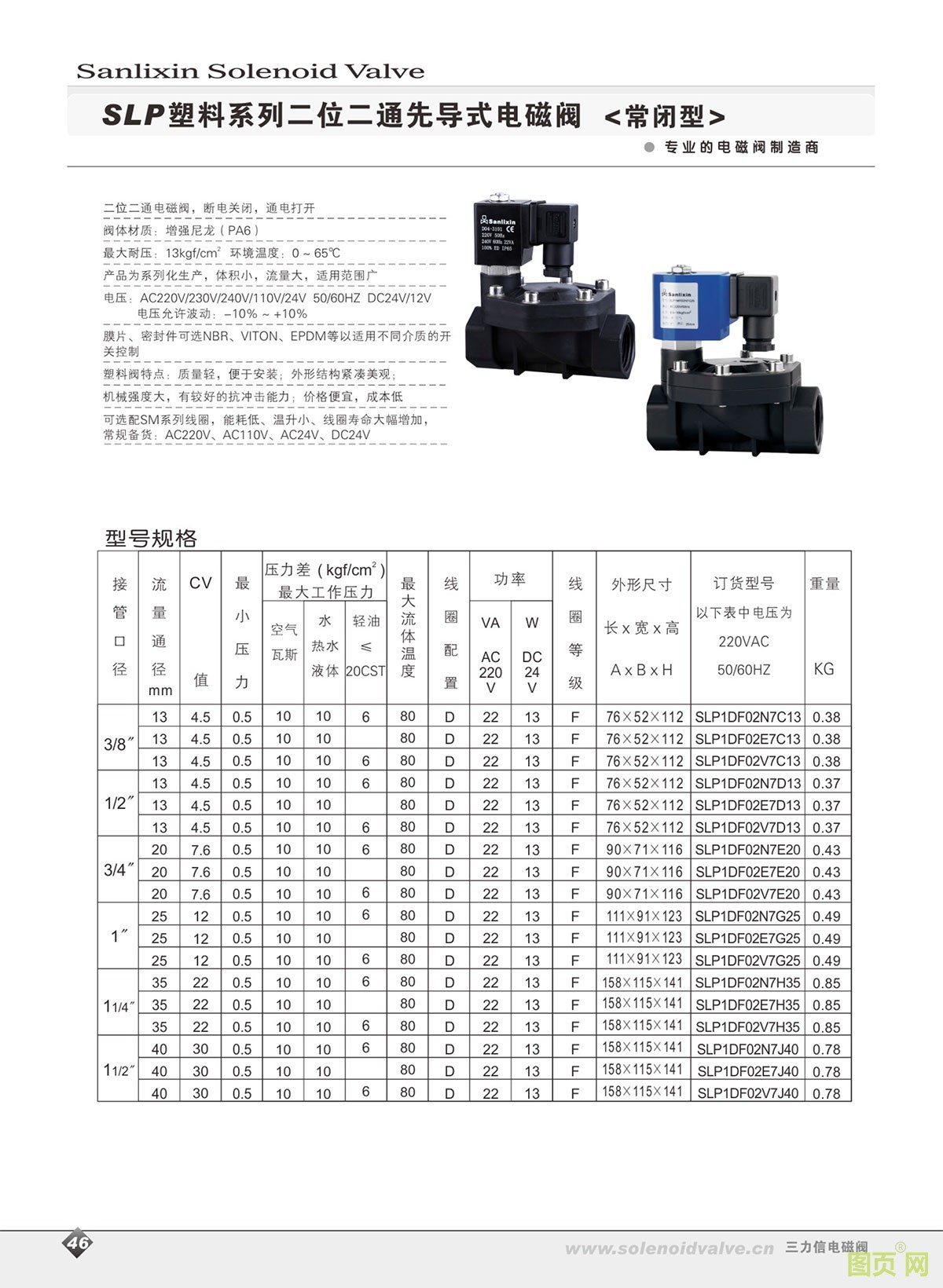 三力信_SLP塑料系列二位二通先導(dǎo)式電磁閥/常閉型_電磁閥
