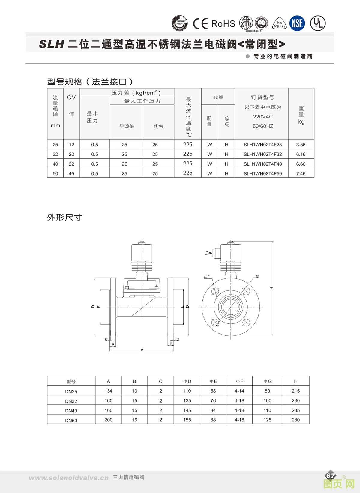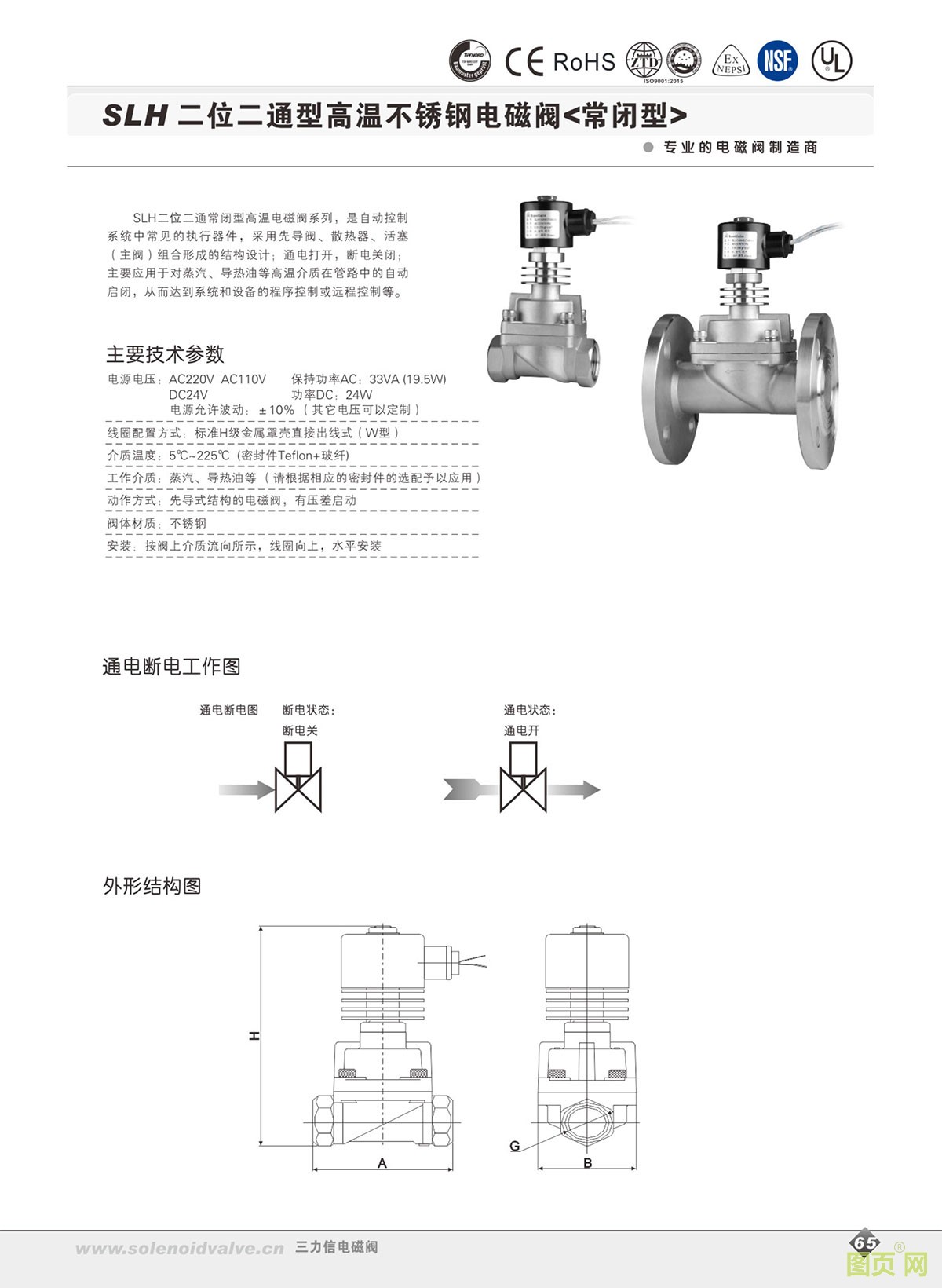 SLH二位二通高溫電磁閥/常閉型