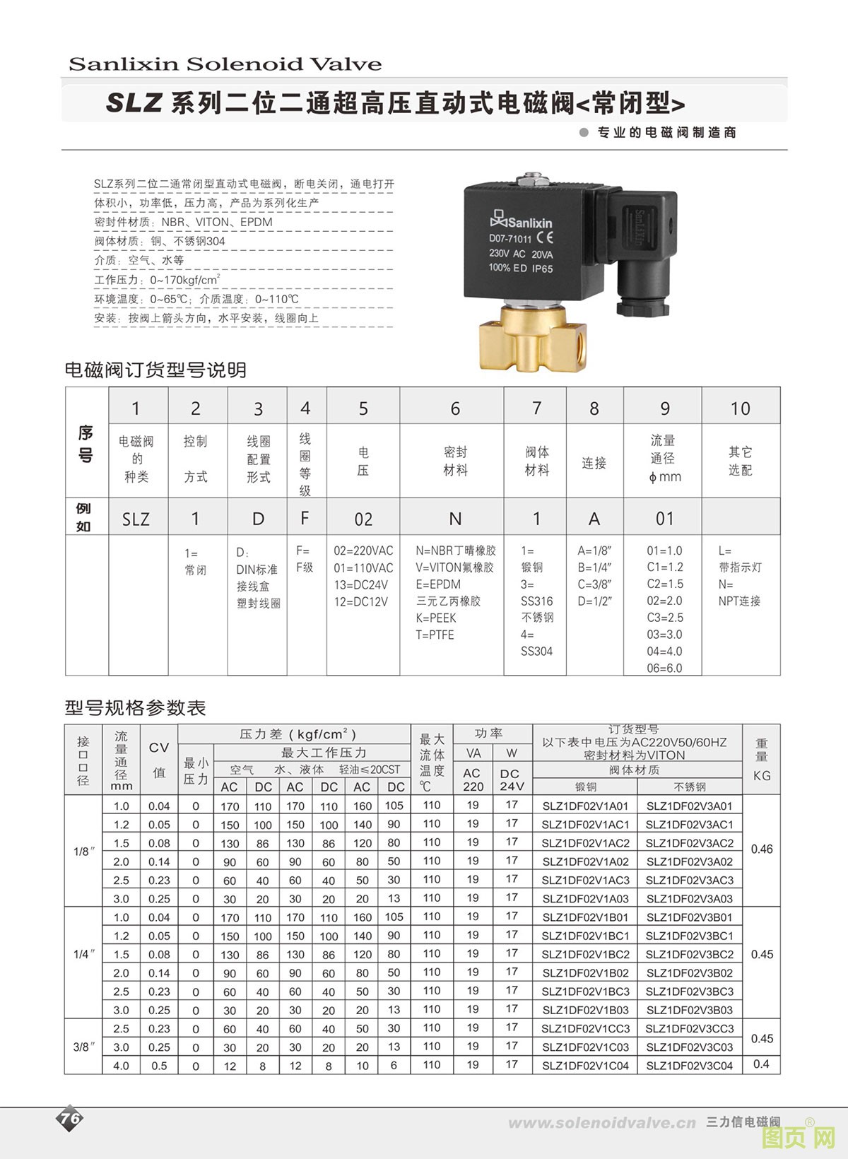 】自行對(duì)信息/圖片/參數(shù)等的真實(shí)性、準(zhǔn)確性和合法性負(fù)責(zé),本平臺(tái)(本網(wǎng)站)僅提供展示服務(wù),請(qǐng)謹(jǐn)慎交易,因交易而產(chǎn)生的法律關(guān)系及法律糾紛由您自行協(xié)商解決,本平臺(tái)(本網(wǎng)站)對(duì)此不承擔(dān)任何責(zé)任。您在本網(wǎng)頁(yè)可以瀏覽【三力信_(tái)SLZ 系列二位二通高壓直動(dòng)式電磁閥/常閉型_電磁閥】有關(guān)的信息/圖片/價(jià)格等及提供