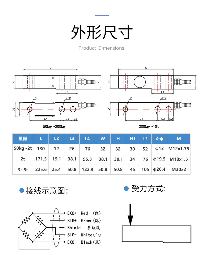 | 量程 | 500kg~20t | 輸出電阻 | 350±5Ω |