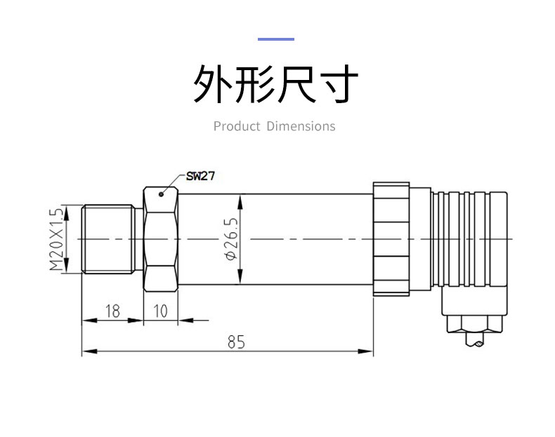 采用不銹鋼整體構(gòu)件,進(jìn)口彈性體原件,高精度應(yīng)變計(jì)及先進(jìn)的工藝,具有靈敏度高、性能穩(wěn)定、良好的抗沖擊能力。接頭采用17-4不銹鋼 外管采用304不銹鋼,結(jié)構(gòu)小巧、緊湊,有良好的防潮能力和優(yōu)異的介質(zhì)兼容性。