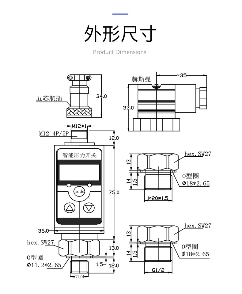 二、產(chǎn)品結(jié)構(gòu)與外形尺寸: