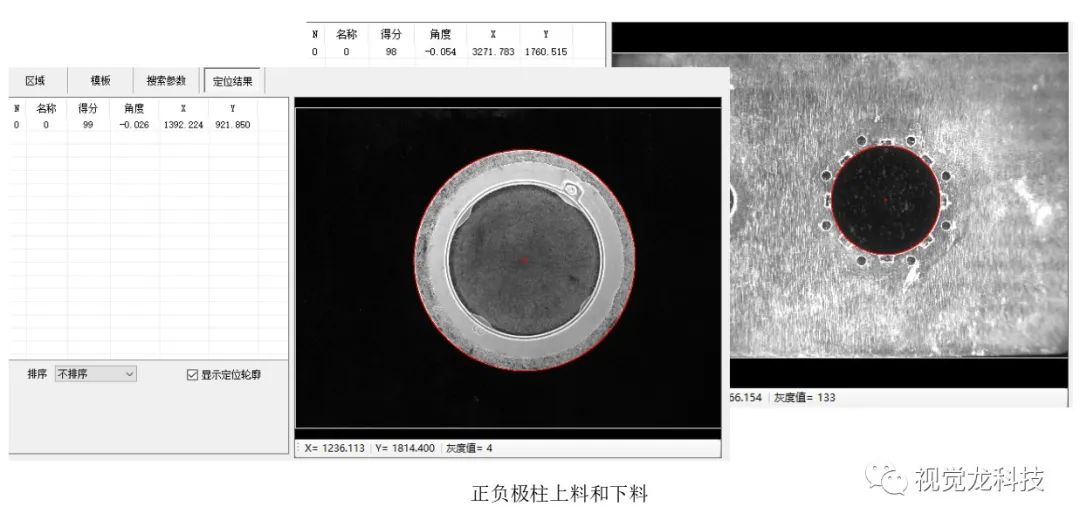 極柱上料和下料位視覺定位,引導(dǎo)機(jī)械手放置。