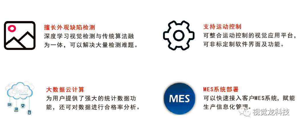 本方案采用的“龍睿AIoT”是一款低代碼、功能可視化、模塊化的視覺平臺,視覺工具拖拽式,無技術(shù)背景也可上手操作。 它包含幾千種算法,架構(gòu)開放、支持多線程多任務(wù)并行處理。龍睿擁有2D視覺、3D視覺、彩色視覺、AI深度學(xué)習(xí)視覺、視覺溯源、邊緣計(jì)算等技術(shù),可以連接各類相機(jī)和傳感器,實(shí)現(xiàn)智能制造、高端農(nóng)業(yè)、智能物流、智慧城市和智慧醫(yī)療等多領(lǐng)域應(yīng)用場景。