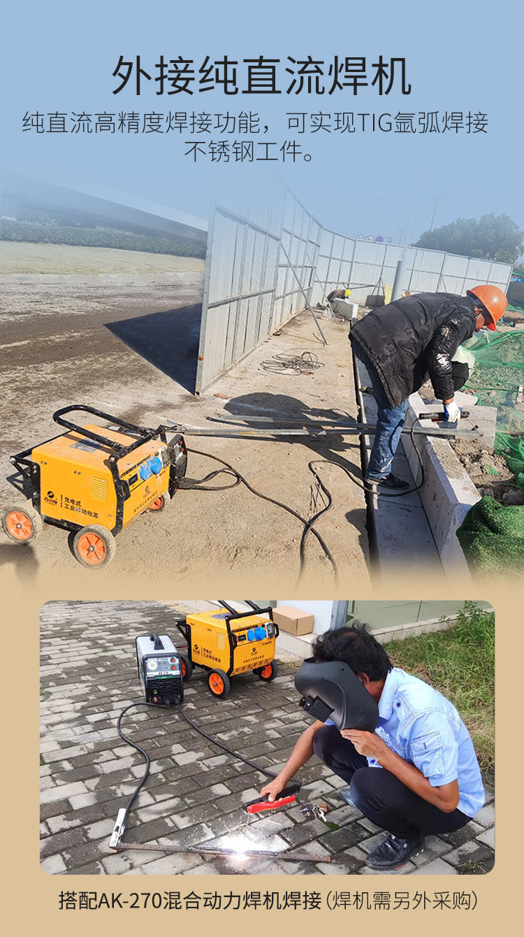 220V/3500W大功率電源,輸出穩(wěn)定,用于電鎬、切割機、角磨機等電動工具現場供電;