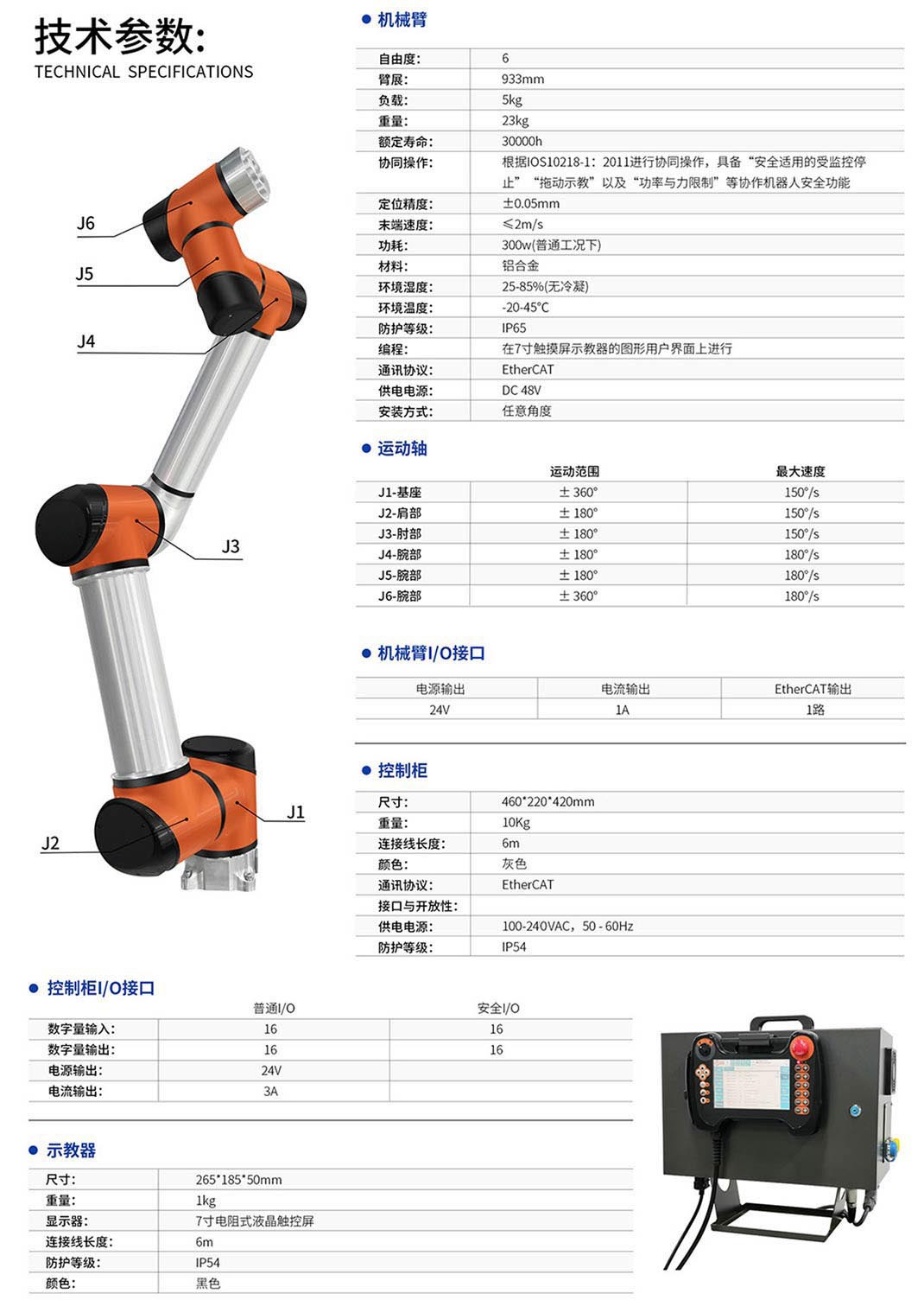 深圳泰科智能TB6-R5協(xié)作機器人是一款靈活的輕型工業(yè)協(xié)作機器人,具有精巧的機械結(jié)構(gòu)設(shè)計。這款協(xié)作機器人有效負(fù)載為5KG,自重僅為23KG,重復(fù)定位精度可達(dá)±0.05mm,適應(yīng)多樣性、柔性生產(chǎn)應(yīng)用需求。模塊化關(guān)節(jié)設(shè)計,使關(guān)節(jié)模組拆卸及更換更快捷,易于安裝及維護(hù)。擁有輕量化、用途廣泛、易于使用的特點,旨在幫助企業(yè)提高經(jīng)濟效益。