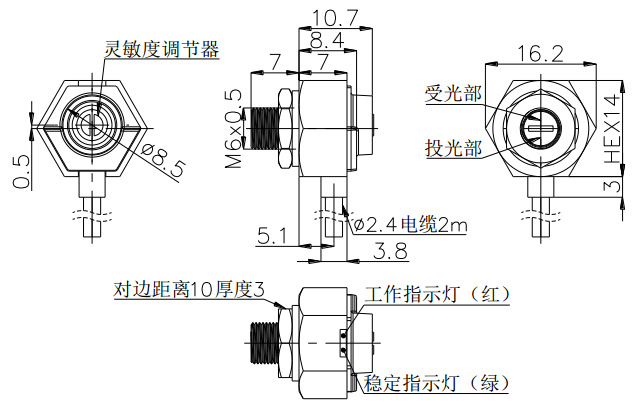 螺紋頭小型M6光電傳感器 集成IC設計 產品詳情