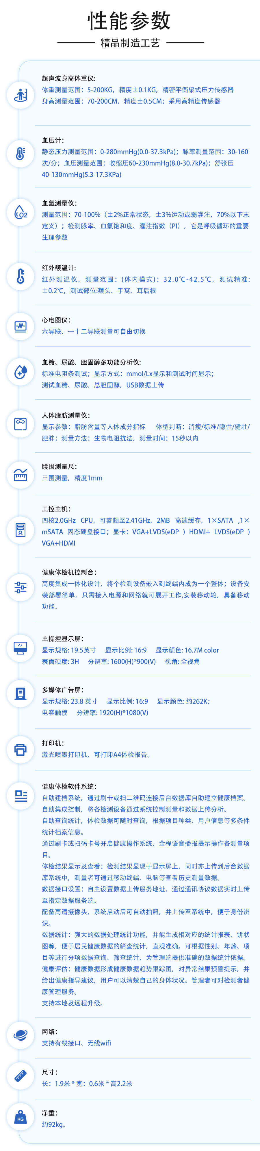 3、準(zhǔn)確性:上正華瑞健康小屋一體機(jī)采用專業(yè)的醫(yī)療級(jí)傳感器和檢測(cè)設(shè)備,確保體檢結(jié)果的準(zhǔn)確性。同時(shí),上正華瑞健康小屋一體機(jī)還能夠自動(dòng)記錄和分析體檢數(shù)據(jù),減少人為誤差,提高體檢的可靠性。
