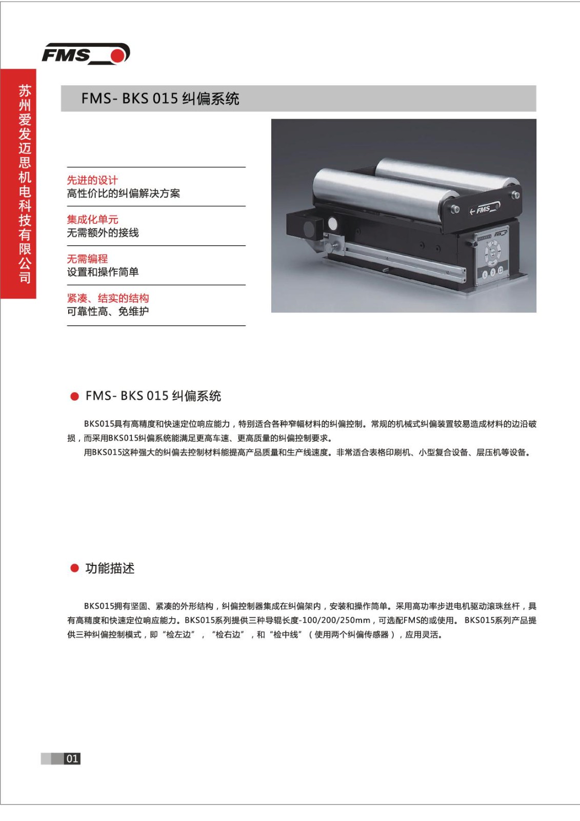 BKS 015具有高精度和快速定位響應能力,特別適合各種窄幅材料的糾偏控制。常規(guī)的機械式糾偏裝置較易造成材料的邊沿破損,蘇州愛發(fā)邁思機電科技有限公司而采用BKS015糾偏系統能滿足更高車速、更高質量的糾偏控制要求。