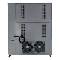 整體分為,試驗(yàn)室、電控柜、機(jī)倉(cāng)三個(gè)組合而成:左側(cè)上方為試驗(yàn)室,由保溫層試驗(yàn)室內(nèi)膽組成,向左單開(kāi)門(mén)型式出入;電控柜位于右側(cè),面板主要由溫度控制儀、開(kāi)關(guān)按扭、故障保護(hù)指示燈組合而成;機(jī)倉(cāng)置于試驗(yàn)室下方,由過(guò)濾器、電磁閥、線(xiàn)路部分、壓縮機(jī)等配件組成。