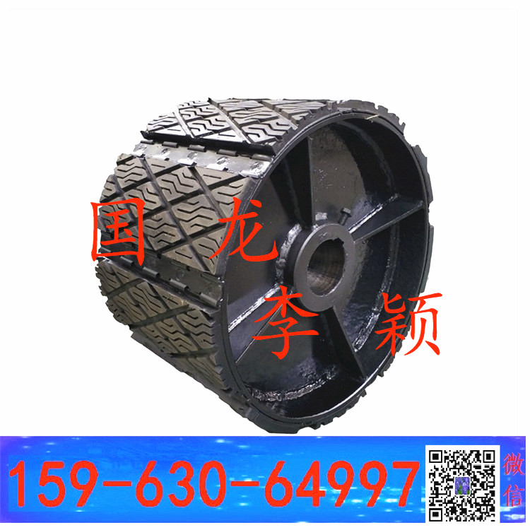 應(yīng)用--滾筒包膠插片產(chǎn)品廣泛使用于各類斗式提升機的頭輪、大型煤礦、鋼廠、水泥廠、港口的皮帶輸送機傳動滾筒上