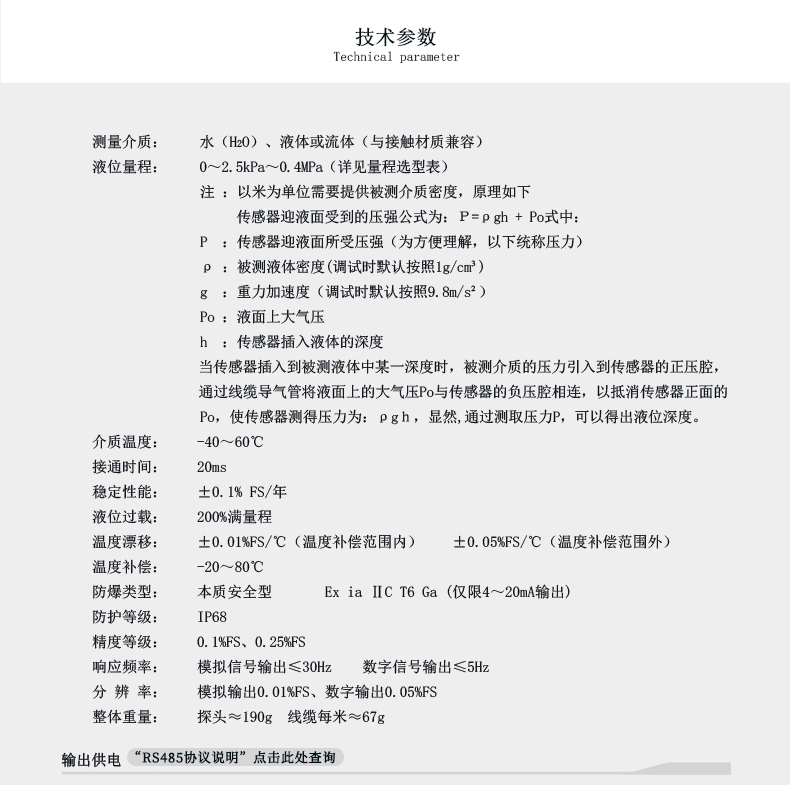 星儀CYW11液位變送器投入式液位計液