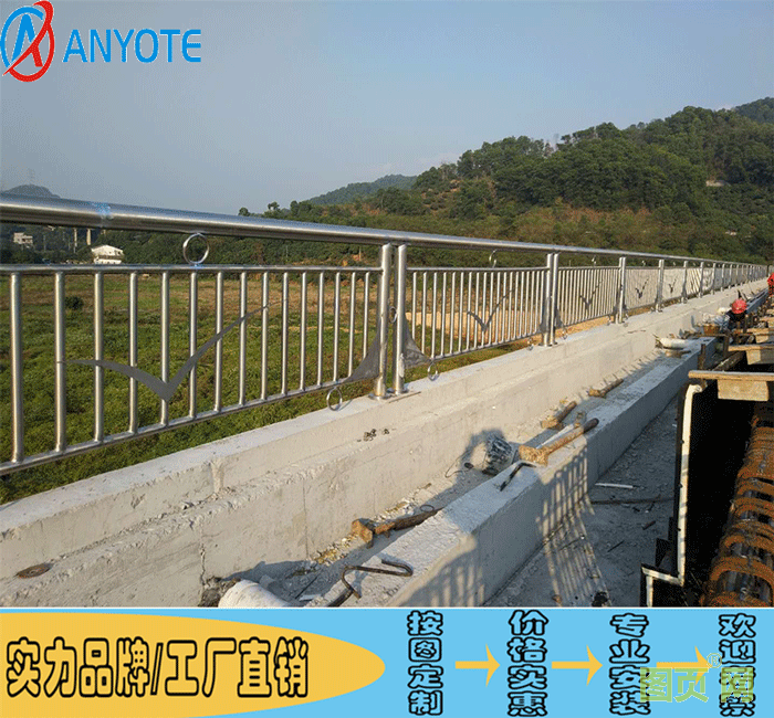 橋梁河道護(hù)欄 橋梁景觀護(hù)欄 不銹鋼欄桿 景觀 河道 河岸 人行道護(hù)欄防撞護(hù)欄的立柱可使用鍍鋅異性管、鍍鋅方管、鍍鋅圓管等,方管80*80mm。120*120mm等